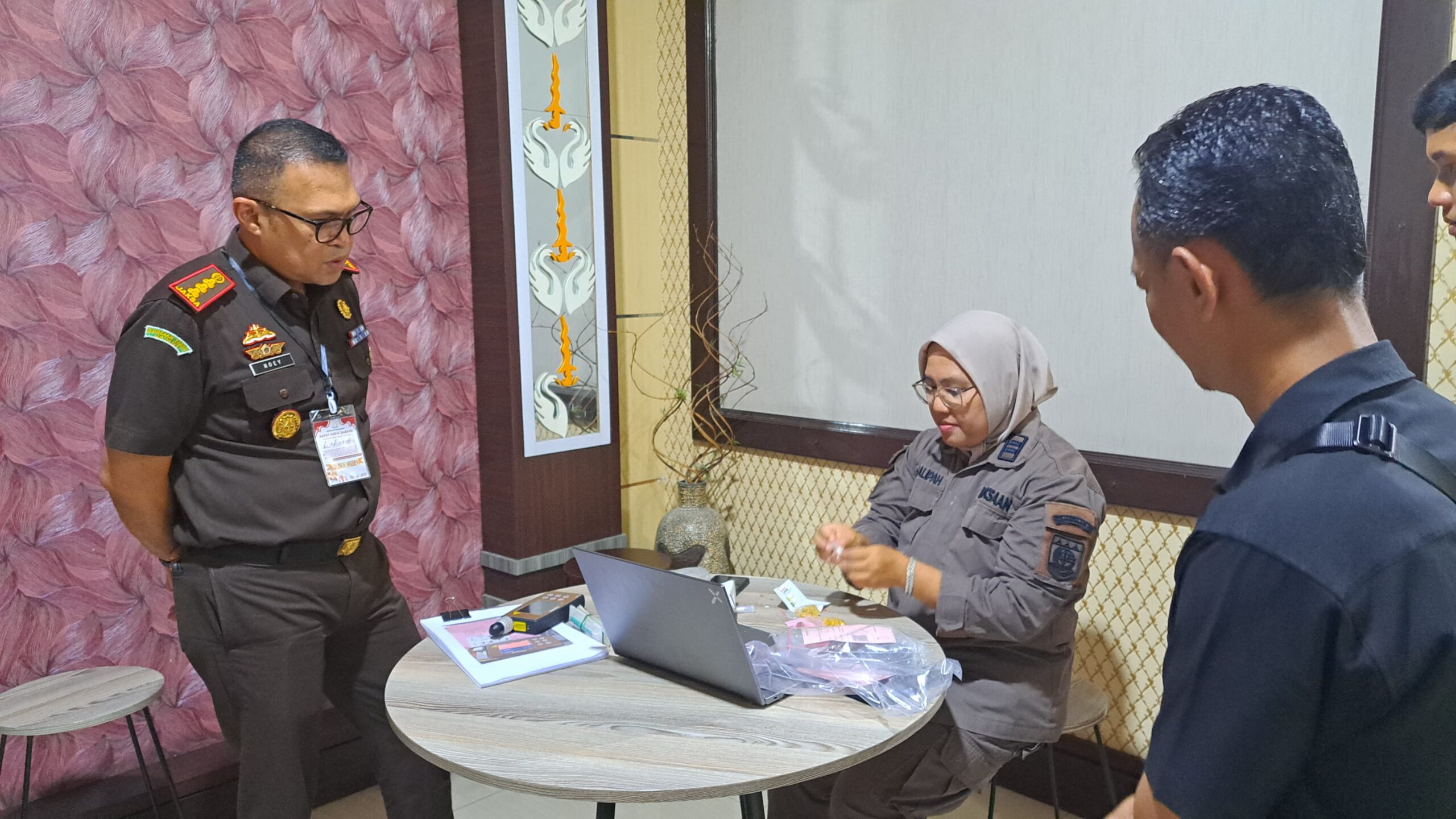 Kegiatan tersebut turut dihadiri oleh Victor Marcel Suribory, S.H., M.H Kepala Seksi Sub Direktorat Penututan Direktorat Tindak Pidana Narkotika dan Zat Adiktif Lainnya pada Jaksa Agung Muda Bidang Tindak Pidana Umum Kepala Subbagian Monitoring dan Evaluasi Biro Perlengkapan pada Jaksa Agung Muda Bidang Pembinaan, Yosua Anton Hasiholan, S.Kom Kepala Subbagian Penyusunan Program dan Laporan Pusat Data Statistik Kriminal dan Teknologi Informasi pada Jaksa Agung Muda Bidang Pembinaan, Hariyono, S.H Penelaah Teknis Kebijakan Tindak Pidana Terorisme dan Lintas Negara pada Jaksa Agung Muda Bidang Tindak Pidana Umum, Gede Umar Rupawan, A.Md Pengelola Penanganan Perkara Protokol dan Pengamanan Pimpinan Biro Umum pada Jaksa Agung Muda Bidang Pembinaan