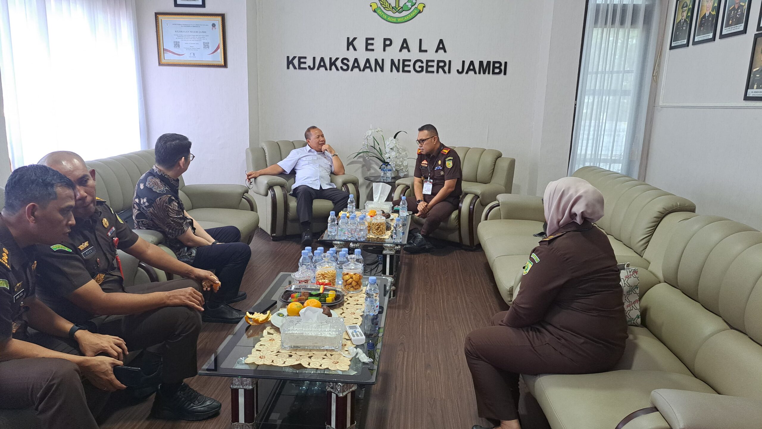 Kamis, 05 Desember 2024 pukul 10.00 WIB, bertempat di Kantor Kejaksaan Negeri Jambi, Kepala Kejaksaan Negeri Jambi M.N. Ingratubun, S.H., M.H didampingi oleh para Kepala Seksi dan Kepala Sub Bagian Pembinaan menerima Kunjungan Direktur B pada Jaksa Agung Muda Bidang Tindak Pidana Umum Wahyudi, S.H., M.H beserta TIM dalam rangka Uji Petik Pengadaan Sarana Dan Prasarana Kejaksaan Negeri Jambi Tahun Anggaran 2024.
