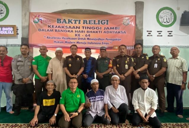 Kamis, 18 Juli 2024 pukul 09.30, Kepala Kejaksaan Negeri Jambi M.N. Ingratubun S.H., M.H beserta jajaran dan etua IAD Daerah Jambi, Ny. Siska Noor Ingratubun beserta anggota pengurus melaksanakanĀ Bakti Religi dalam rangka memperingati Hari Bakti Adhyaksa Ke-64 Tahun 2024 dan Hari Ulang Tahun Ikatan Adhyaksa Dharmakarani Ke-XXIV.