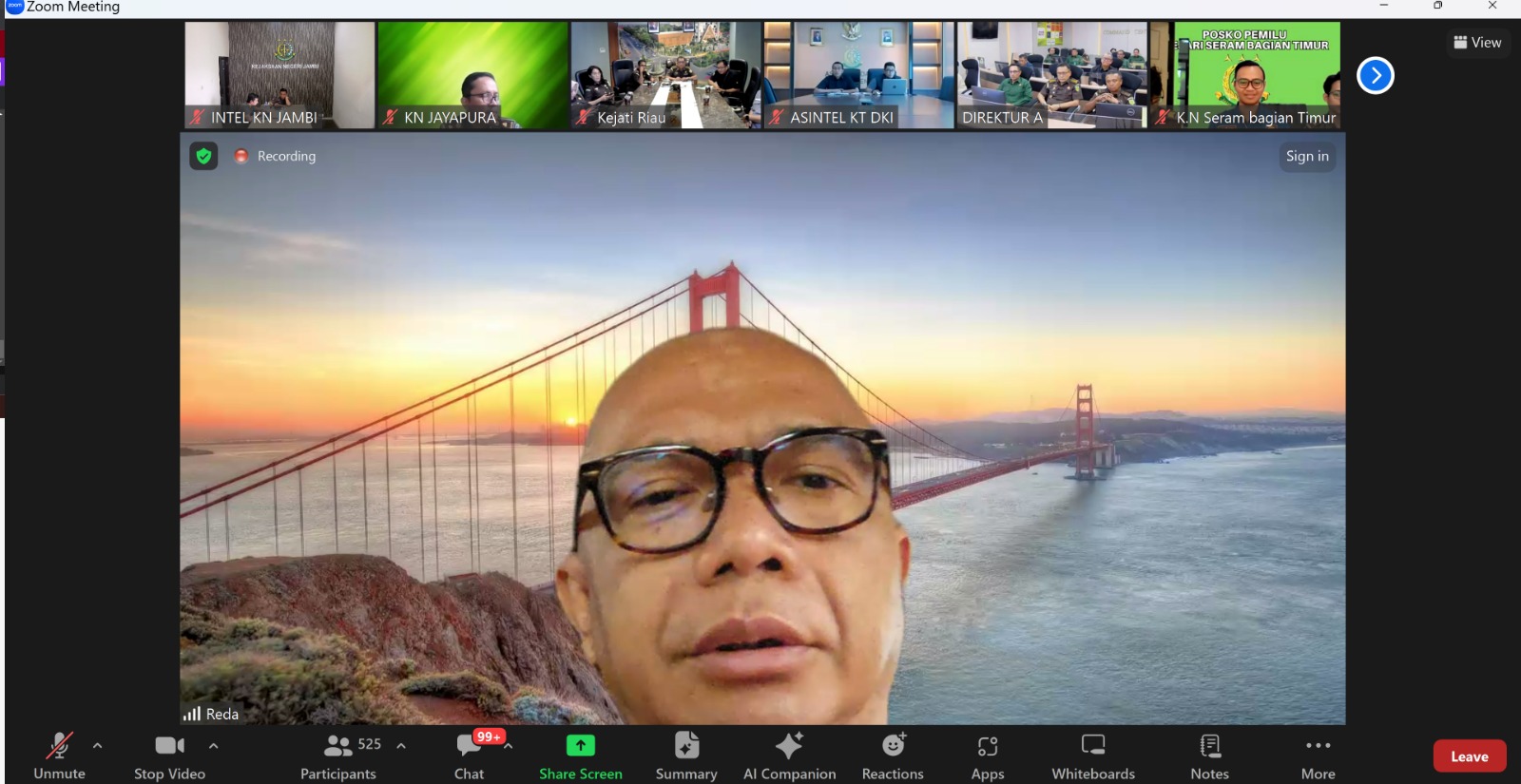 Rapat tersebut dilakukan secara daring yang dipimpin langsung oleh Jaksa Agung Muda Intelijen Dr. Reda Manthovani, S.H., LL.M dan dihadiri oleh Direktur Ideologi, Politik, Pertahanan dan Keamanan (Direktur A) pada Jaksa Agung Muda Bidang Intelijen, Jacob Hendrik Pattipeilohy, S,H., M. H, Kasubdit Direktorat A pada Jaksa Agung Muda Intelijen beserta para Koordinator, Para Kepala Kejaksaan tinggi dan Asisten Intelijen, Para Kepala Kejaksaan Negeri dan Kasi Intelijen