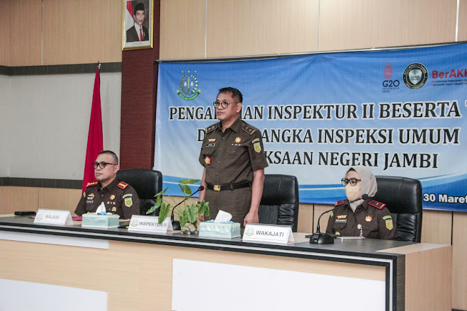 Kepala Kejaksaan Negeri Jambi M.N. INGRATUBUN, S.H., M.H melalui Kepala Seksi Intelijen WESLI SIRAIT, S.H., M.H dalam hal ini menjelaskan bahwa Inspeksi umum merupakan agenda rutin program kerja tahunan Bidang Pengawasan Kejaksaan Agung yang bertujuan untuk melakukan pengawasan dan evaluasi kinerja satuan kerja dalam mendukung tercapainya tugas dan fungsi Kejaksaan.