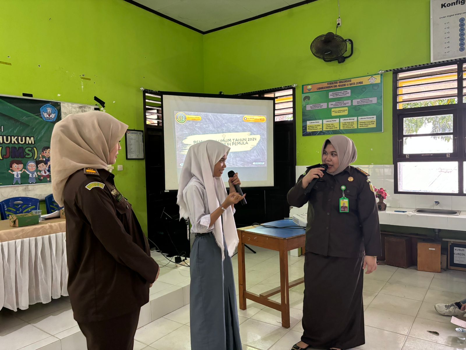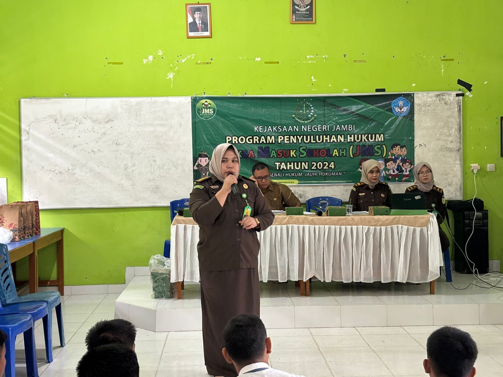 untuk diketahui Program Jaksa Masuk Sekolah (JMS) tersebut bertujuan untuk memberikan pemahaman kepada Anak-anak Sekolah melalui Penyuluhan Hukum mengenai Pemilihan Umum Tahun 2024 bagi Pemilih Pemula serta peran Kejaksaan Negeri Jambi dalam memberikan pemahaman hukum kepada Anak Sekolah terkait dengan permasalahan hukum lainnya. Kejaksaan yang merupakan lembaga pemerintah yang menjalankan kekuasaan dibidang penegakan hukum turut mempunyai tanggung jawab moril memajukan generasi muda para pelajar untuk senantiasa mengerti dan memahami tentang hukum dan permasalahannya. Kejaksaan memandang bahwa pelajar merupakan gerbong utama dari suatu generasi muda yang mempunyai posisi dan peran strategis dalam pembangunan yang akan menentukan arah dan tujuan suatu negara di masa yang akan datang, artinya masa depan suatu bangsa dan negara akan ditentukan dari kesiapan dan kemampuan serta kualitas dari para pelajarnya.