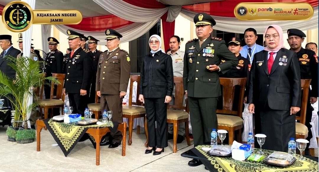 Upacara tersebut dipimpin secara langsung oleh Kapolresta Jambi, Eko Wahyudi, S.I.K selaku inspektur adalah Kapolresta Jambi, Eko Wahyudi, S.I.K dan diikuti oleh PJ. WaliKota Jambi, Sri Purwaningsih, SH, MAP, Sekda Kota Jambi, Drs. H.A Ridwan, M.Si, Wakil ketua DPRD Jambi, Roro Nully Kurniasih, Dandim 0415/Jambi, Letnan Kolonel Inf Yoga Cahya Prasetya beserta jajaran, Kadis Damkar Kota Jambi, Mustari Affandi beserta jajaran, Kasatpol PP Kota Jambi, Feriadi, S.Sos, M.E beserta jajaran, Kadishub Kota Jambi, M. Saleh Ridha, S.STP, ME beserta jajaran, Ketua Pengadilan Negeri Jambi, atau yang diwakili oleh Wakil Ketua Pengadilan Negeri Jambi, Hendra Halomoan, SH, MH, Kakanwil Kemenkumham Jambi, atau yang diwakili, Jajaran Polsek Polresta Jambi serta unsur-unsur Forkopimda Kota Jambi