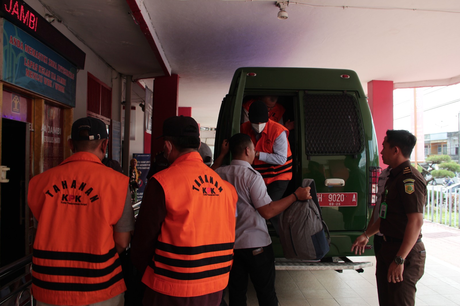 “Tahanan dibawa dari Rutan KPK pada pukul 08.00 WIB dan berangkat dari Bandara Soekarno Hatta pukul 10.00 WIB hingga sampai di Bandara Sultan Thaha jambi pukul jam 11.30 WIB.” Jelas Kasi Intel