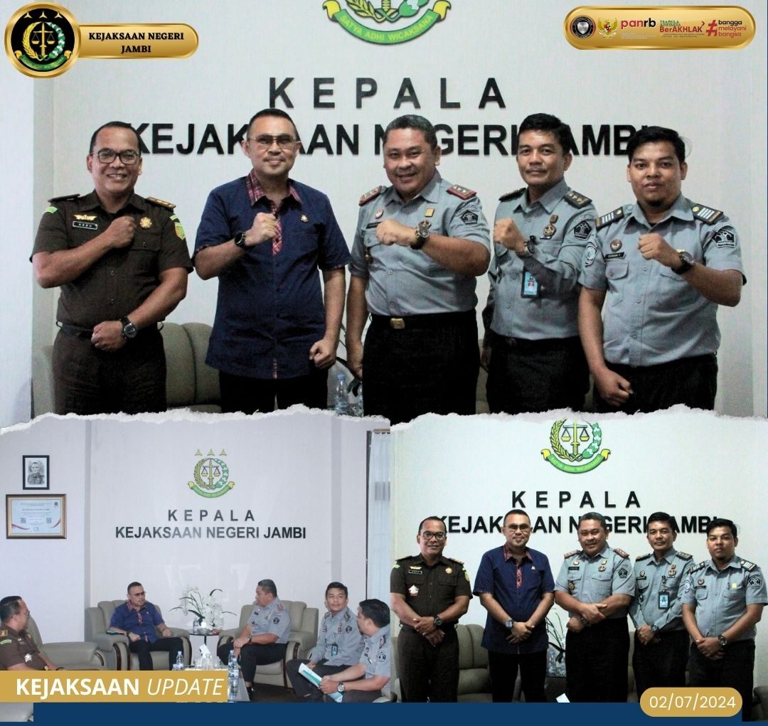 Selasa, 02 Juli 2024 pukul 13.30 WIB, bertempat di Kantor Kejaksaan Negeri Jambi di Kantor Kejaksaan Negeri Jambi, Kejaksaan Negeri Jambi menerima Kunjungan dan Silaturahmi oleh Kepala Rumah Penyimpanan Benda Sitaan Negara (RUPBASAN) Kelas I Jambi, Prayudha Rachmadany, SH, MH beserta jajaran.