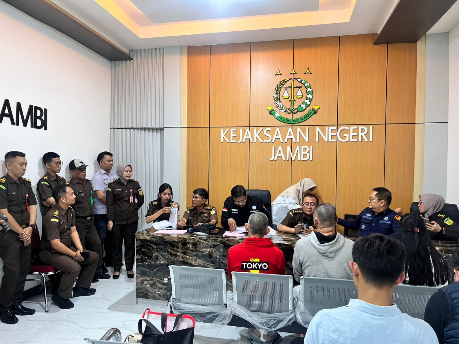 Senin, 10 Februari 2025 pukul 14.30 WIB bertempat di Ruang Media Center Kejaksaan Negeri Jambi, Kejaksaan Negeri Jambi telah menerima penyerahan tersangka dan barang bukti (Tahap II) dalam perkara tindak pidana narkotika atas nama tersangka Helen Dian Krisnawati dan Didin alias Diding bin Tember. Penyerahan dilakukan di Kejaksaan Negeri Jambi. Selanjutnya dilakukan Tahap II Perkara atas nama Tersangka Dedi Susanto Alias Tek Hui dan Mafi Abidin Bin Jaenal Abidin dari Mabes Polri di Kejaksaan Negeri Jambi.