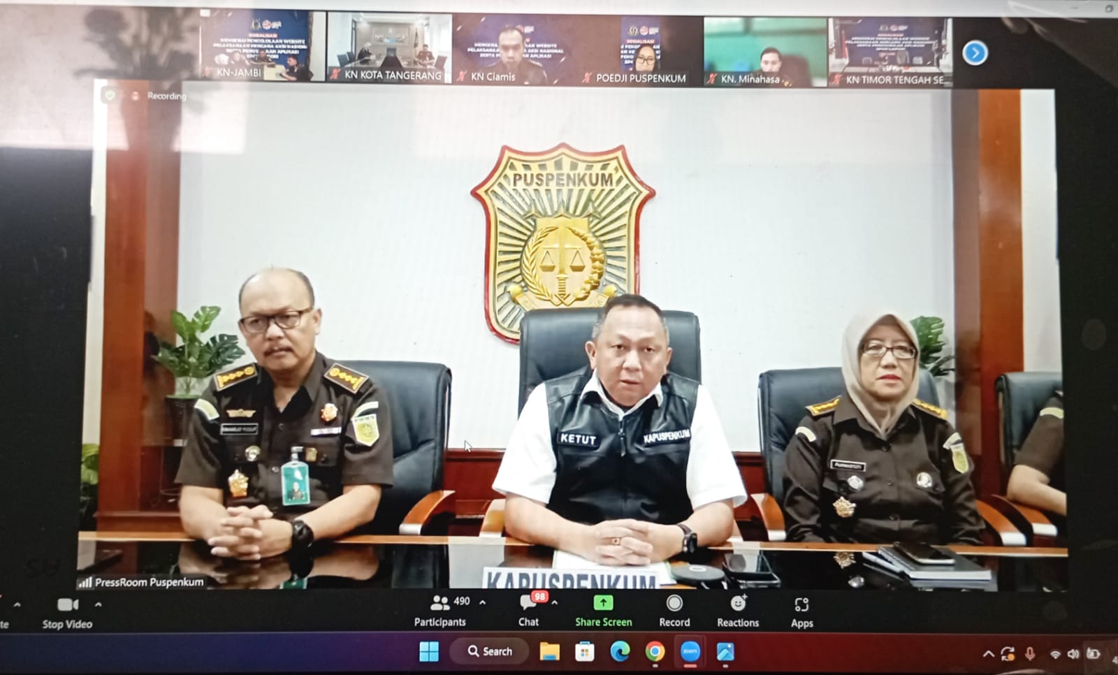 Rapat Koordinasi Forkopimda Se-Provinsi Jambi Tahun 2022 09/03/202213/03/2022oleh admin-2819 Dilihat Rapat Koordinasi Forkopimda Se-Provinsi Jambi Tahun 2022 Post Views: 2,819 Jangan LewatkanBuron Selama 7 Tahun , DPO ditangkap Tim TABUR Kejaksaan RIDialog Interaktif Dalam Program Jaksa Menyapa Dengan Mengusung Tema “Peranan Jaksa Pengacara Negara Dalam Hukum Perdata Dan Tata Usaha Negara”Kejaksaan Negeri Jambi menghadiri Kegiatan Tabligh Akbar dan Pelantikan Pengurus Majelis Kota jambi Bahagia Bersholawat Tahun 2026Rapat Paripurna DPRD Kota Jambi Dalam Rangka Penyampaian Pandangan Umum Fraksi-Fraksi DPRD Kota Jambi Terhadap Laporan Keterangan Pertanggungjawaban (LKPJ) Walikota Jambi Tahun Anggaran 2025Pengumuman Barang Bukti Tilang Kejaksaan Negeri Jambi