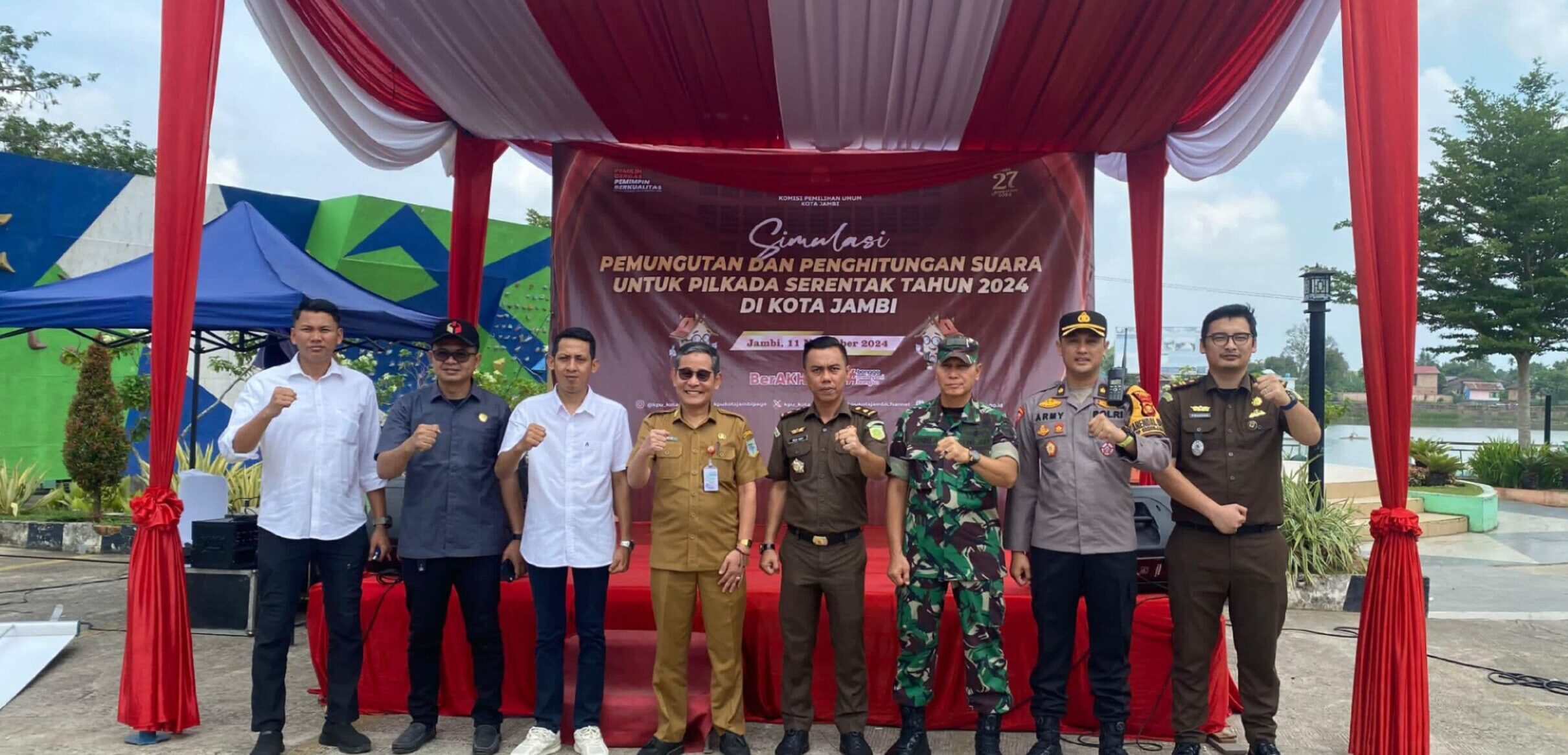 Kegiatan tersebut turut dihadiri oleh Pj. Walikota Jambi diwakili oleh Asisten Pemerintahan dan Kesejahteraan Rakyat, Fahmi, S.P, Kapolresta Jambi diwakili oleh Kabag Ops, Kompol Army Sevtiansyah, Dandim 0415/Jambi diwakili oleh Pasi Ops Kodim 0415/Jambi, Mayor Joni Armadi, Ketua Bawaslu Kota Jambi, Johan Wahyudi, S.H.I, Kapolsek Telainaipura, AKP Harefa, SE, MM, Kasubsi Ipoleksosbudhankam, Dewangga Adhi Pradana, SH, Seluruh Panitia Pemilihan Kecamatan (PPK) se-Kecamatan Danau Sipin, Seluruh Panitia Pemungutan Suara (PPS) se-Kecamatan Danau Sipin dan sekitar 150 masyarakat kacamatan danau sipin yang mengikuti kegiatan simulasi tersebut.