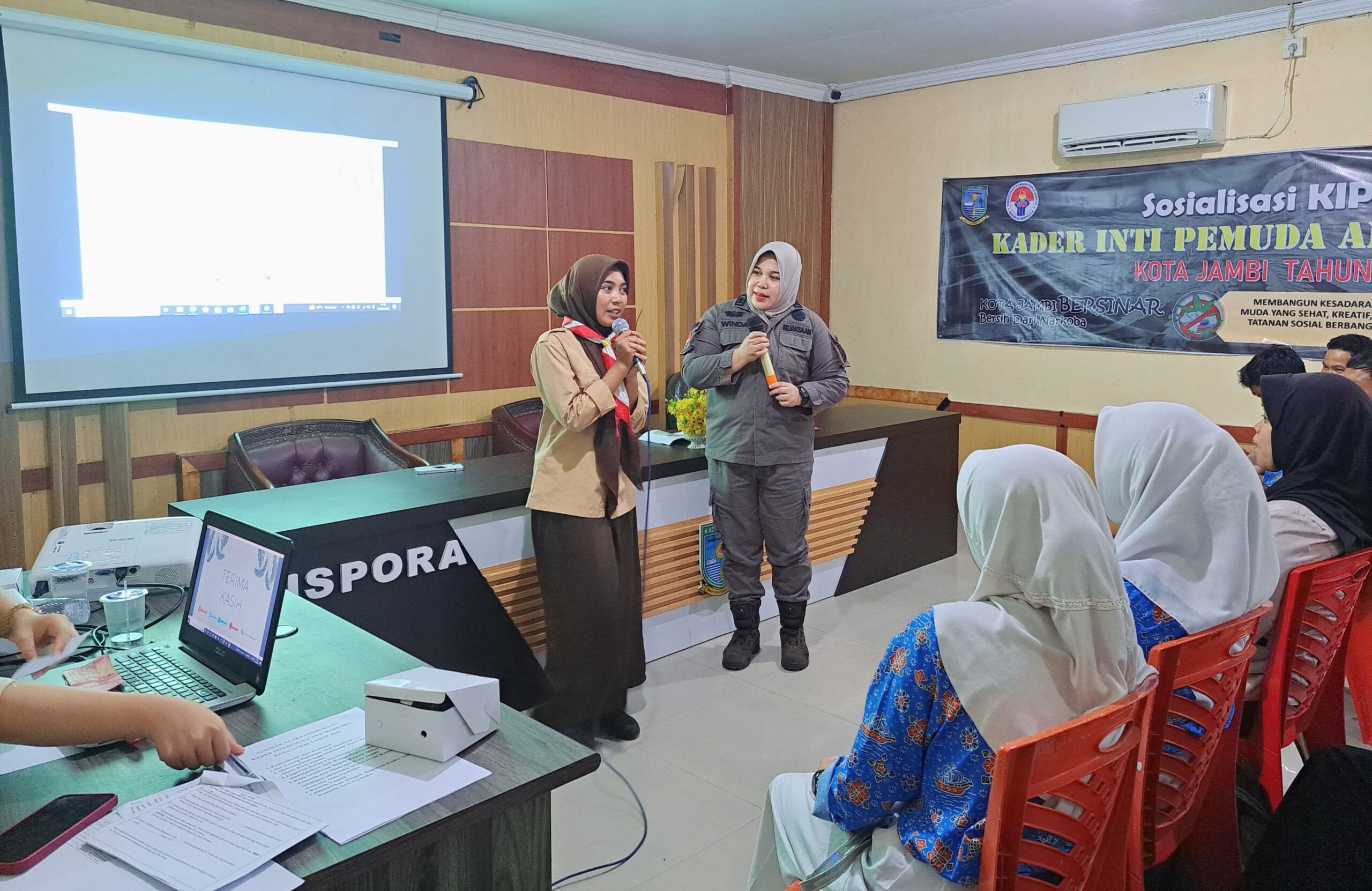 Kamis, 22 Agustus 2024 pukul 11.00 WIB, bertempat di Aula Dinas Pemuda dan Olahraga (Dispora) Kota Jambi, Jaksa Fungsional pada bidang Intelijen Kejari Jambi, Winda Muharani, SH.MH selaku narasumber melaksanakan kegiatan Sosialisasi Kader Inti Pemuda Anti Narkoba (KIPAN) Tahun 2024 dengan mengusung tema “Pemuda Jambi Bersinar (Bersih dari Narkoba)”.
